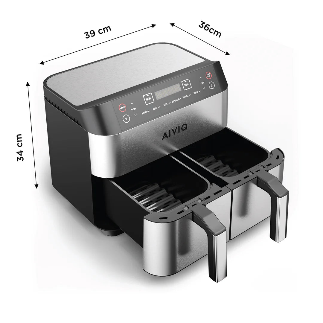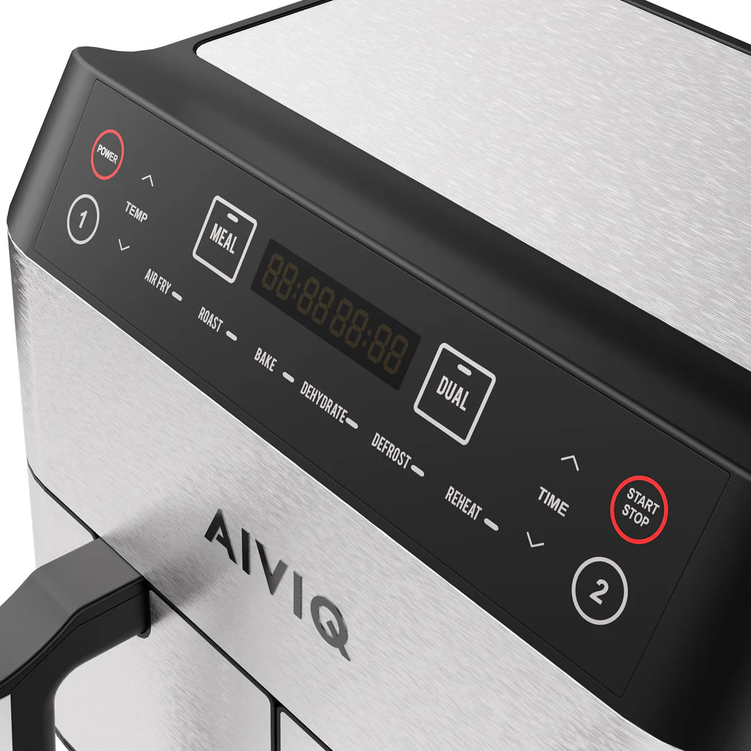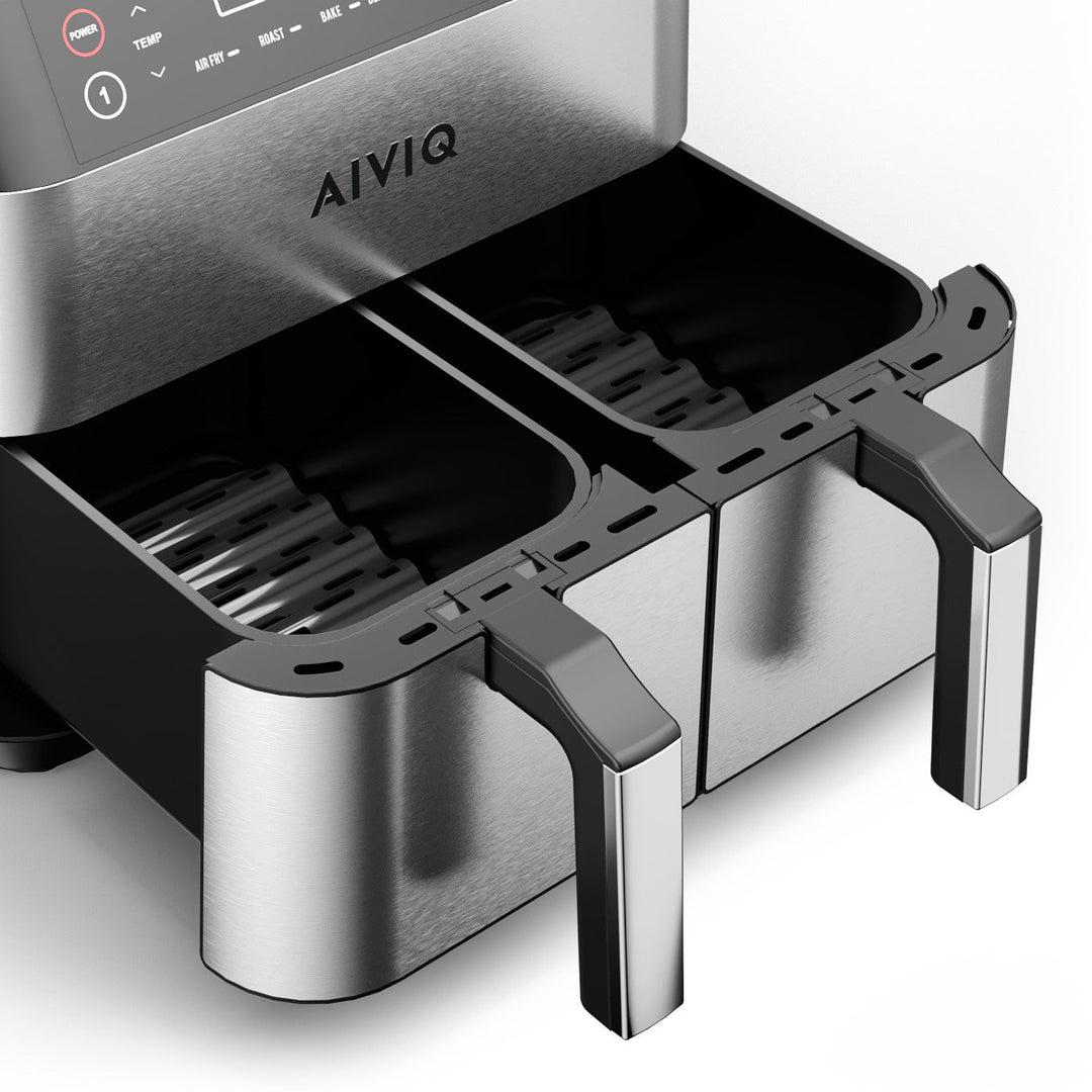 AIVIQ Premio Dual Airfryer kombinerar elegant rostfritt stål med ett modernt och intuitivt gränssnitt, vilket gör den till ett stilfullt val för ditt kök. De avtagbara korgarna och diskmaskinssäkra stekplattorna gör rengöringen enkel och bekväm, så att du kan fokusera på matlagningen. Med snabbare tillagning än traditionella ugnar är denna airfryer din nya kökskompanjon för perfekta måltider – varje gång.